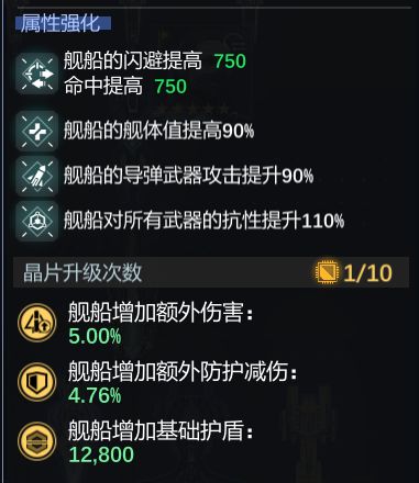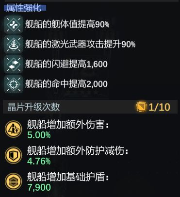 放在前翼时,就主要装舰体值,抗性,闪避这一类的部件。