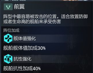 前翼受击概率最高,但是阵位加成主要增加防御属性,并且前排可以放4艘船分摊攻击概率。