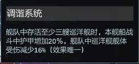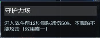 船体自带技能:巡洋舰和战列舰伤害加成;巡洋舰减伤效果;战斗前舰队12秒减伤。是妥妥的前期输出舰队的天选旗舰船。