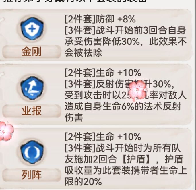抗伤辅助:明光或者金刚或者列阵或者反伤套,词条以防御生命为主,法宝优选三阶土鳞炼化生命,本命推荐镇岳 。