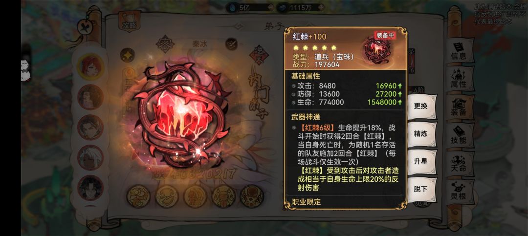 红尘三千(没有触发暴击增加没有暴击的伤害比例,最少15%,适合碾压,这个伤害铁定不会暴击)。