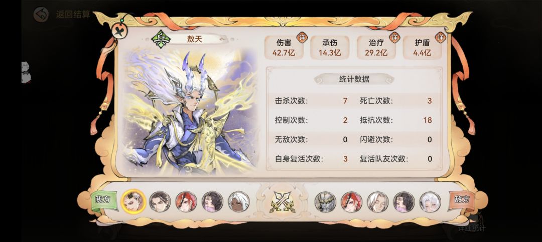 我愿意称第20回合紫灵神之一手,这肉队谁也奈何不了谁。右侧队伍还有苜蓿,相互配合,导致天一剑诀效果直接…似乎可以说是消失了也不为过,相当影响卫寒等这类降低生命上限的角色技能的实战效果,20回合打满了没有输赢。