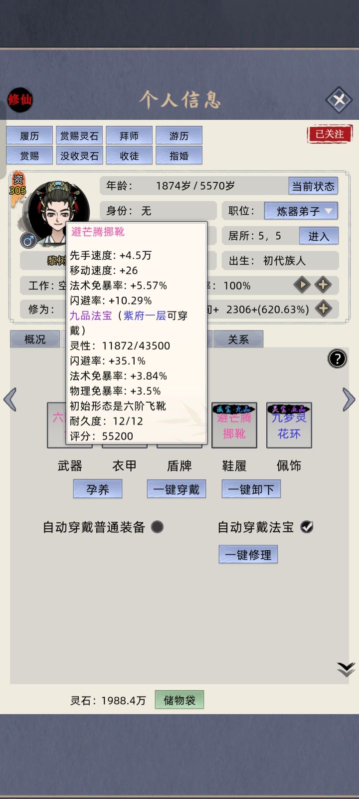 一路元婴无压力。四,sl一个闪避率的鞋子,这个是打架的关键。我那个已经45%闪避率,还有提升空间。