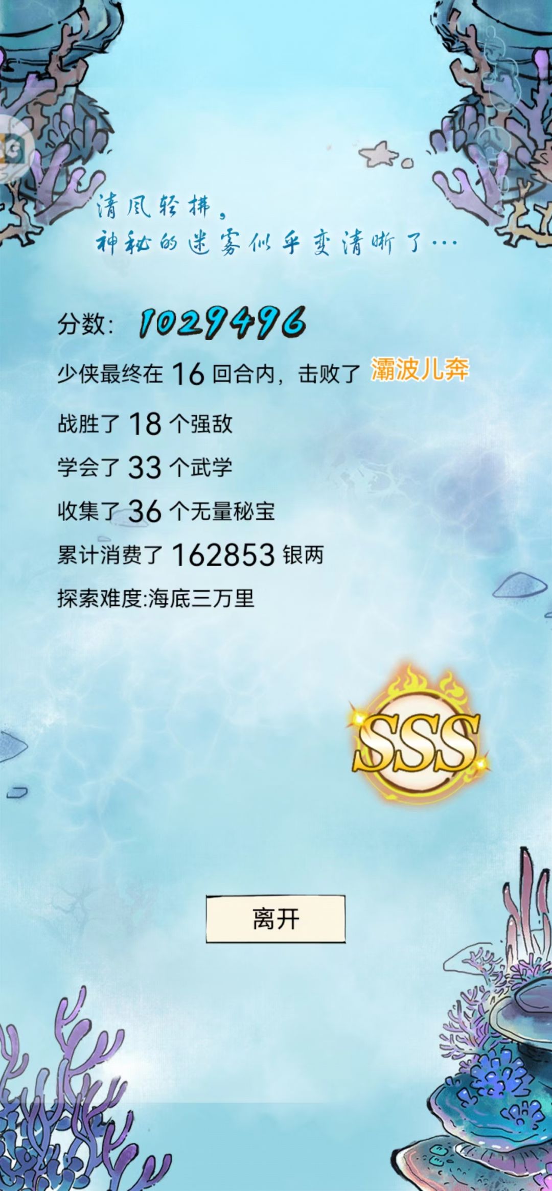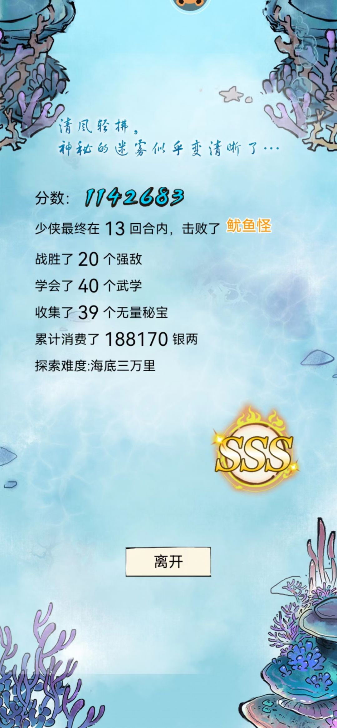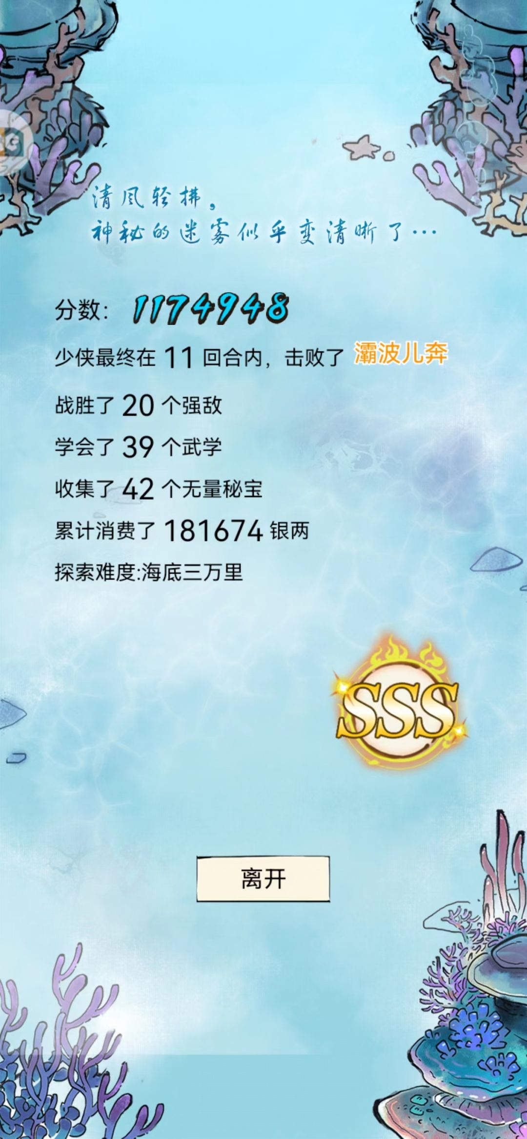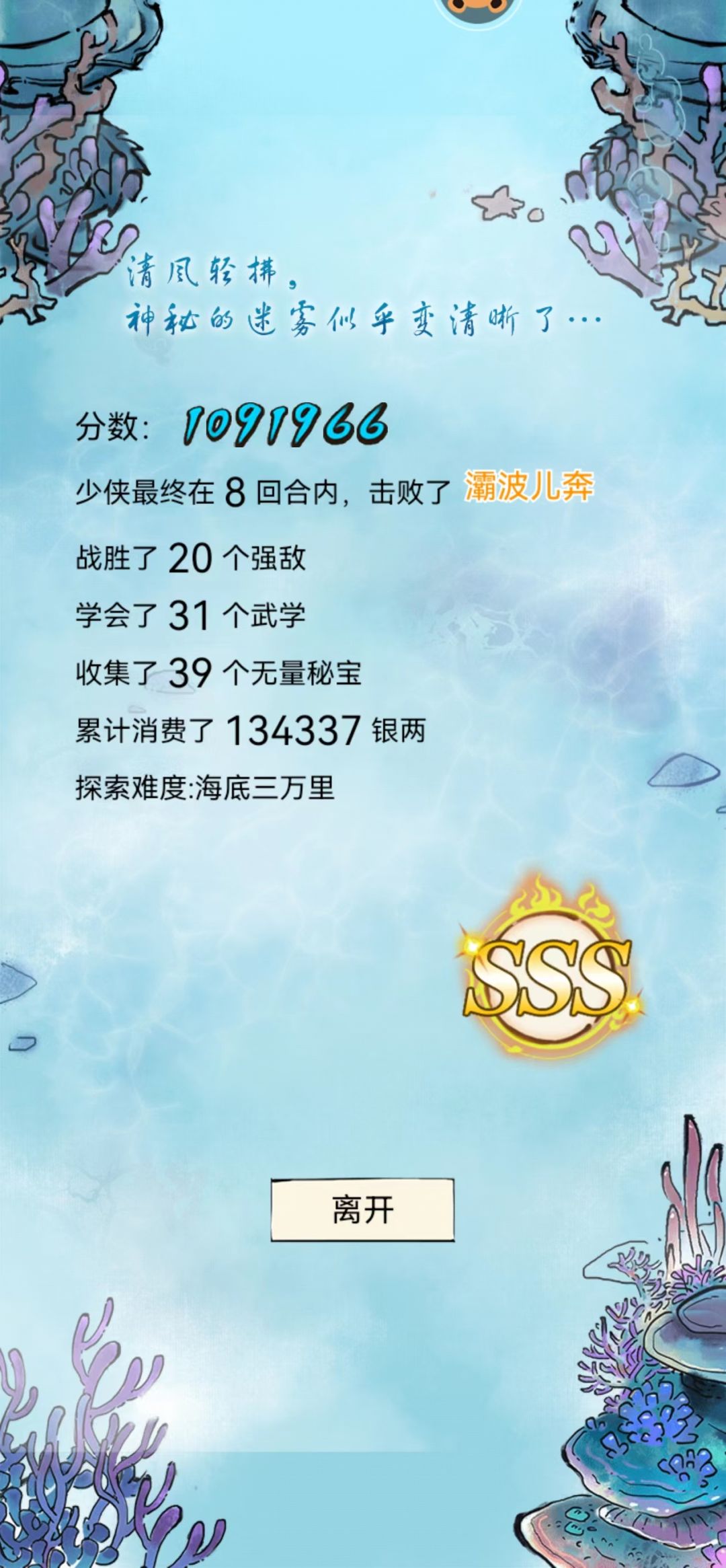 难点六:即便boss战能控制在13回合内,甚至10回合内满分,你发现你武学宝物银两消耗都较低,刚好90多万低分飘过等于白打