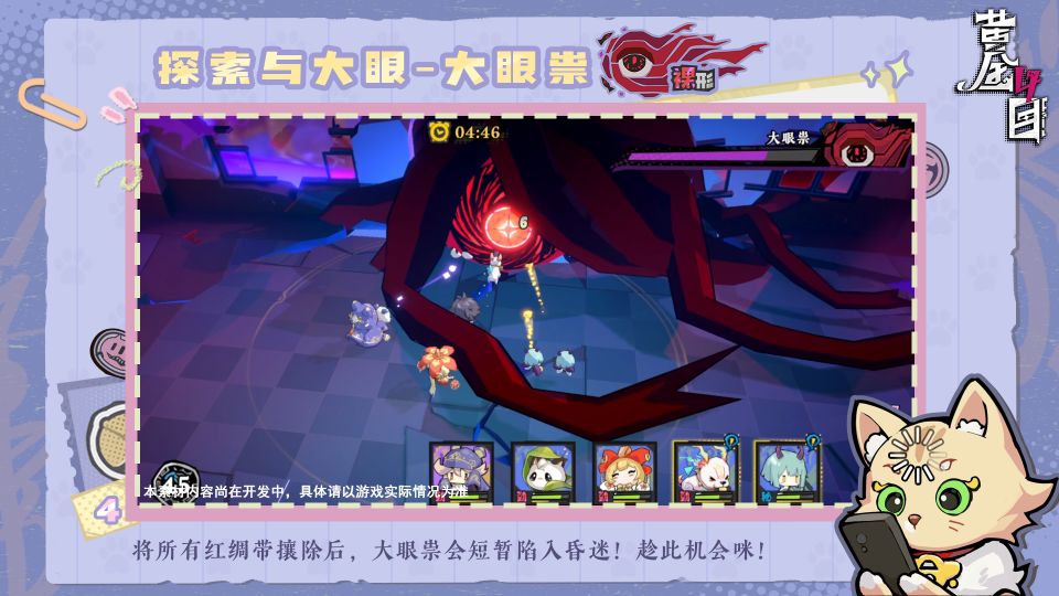 快先击倒召唤来的红绸带吧!所有红绸带都击败后,大眼祟会短暂地陷入昏迷!趁此机会喵哼哼哼!!