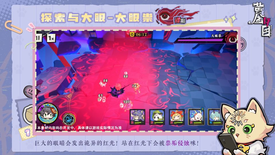 巨大的眼睛会发出诡异的红光!站在红光下会被【祟垢侵蚀】咪!怎么还能这样啊!