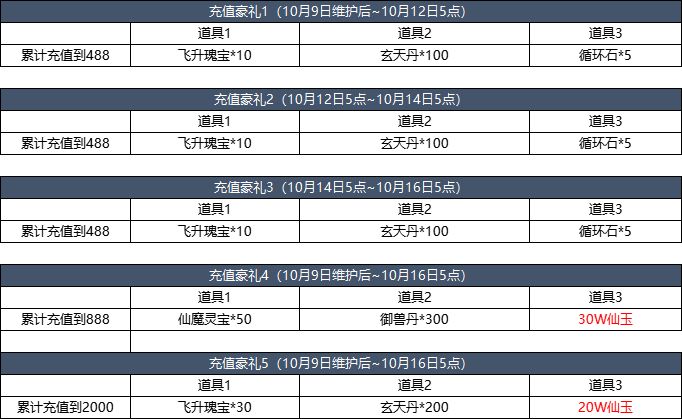 【活动简介】活动期间累计充值达到指定金额即可领取惊喜礼包!