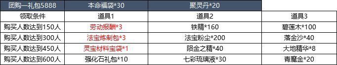 【活动简介】活动期间内,道友们可购买活动界面的团购商品。当购买团购商品的人数达到一定数量时,购买过该商品的道友们可以额外领取相应奖励。