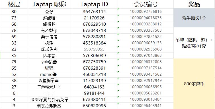 我们在满足活动要求的回复楼层中选取了16名玩家,获得奖励