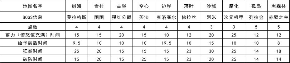 下面是十个地图及其对应BOSS属性图