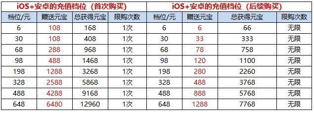 活动内容:水粉们充值可获得元宝返还,不同档位首次购买可获得至少20%的元宝返还。