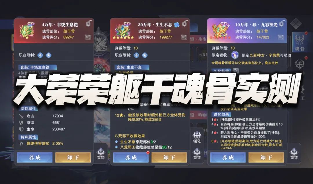 大家好,我是肚子很疼的何二维一。今天的攻略咱们来实测一下SP宁荣荣在此次真身系列活动中上线的躯干魂骨和进化躯干魂骨的实战效果,希望能给大家一些小小的帮助和欢乐。