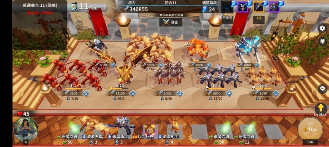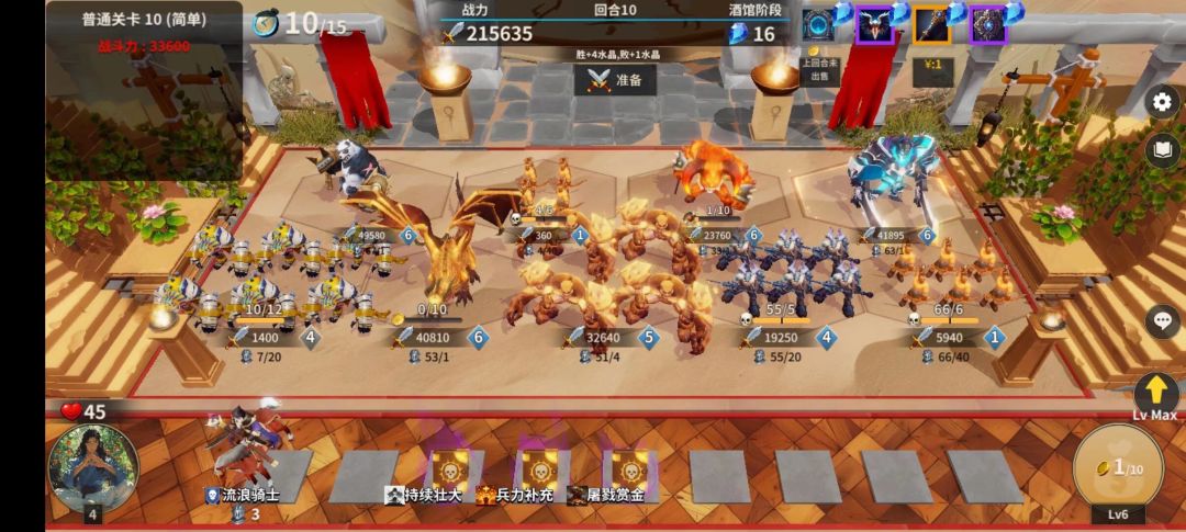 第四回合与第一回合一样的思路。有野狼/洞穴蜘蛛/火焰蜥蜴/兽人勇士都可以买。并且一定要买两个怪。然后如果有神器或者法术或者经济怪,可以让你多买流浪骑士才买。