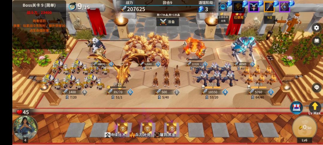 第三回合直接卖怪升级,狼就上场升级,兽人勇士,上场卖掉。