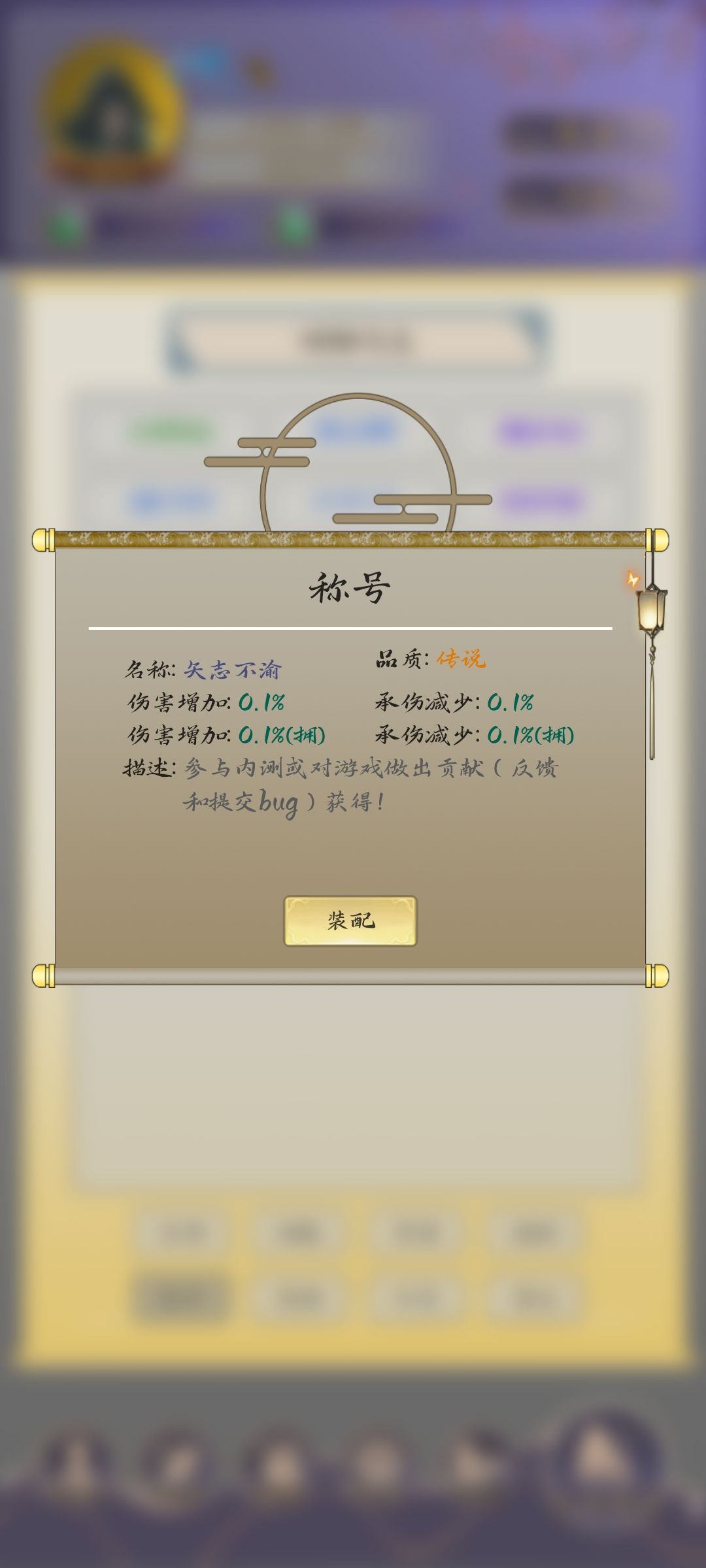10.“矢志不渝”,提供重大bug。这种提供bug类称号每次提供新的重大bug,作者会发新的称号(应该是作者现创,给你要个人信息直接发你背包里,四条属性一般,留作纪念)。以后这类称号就不更新了。如图七