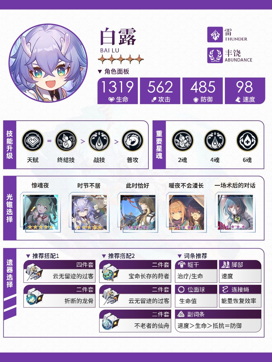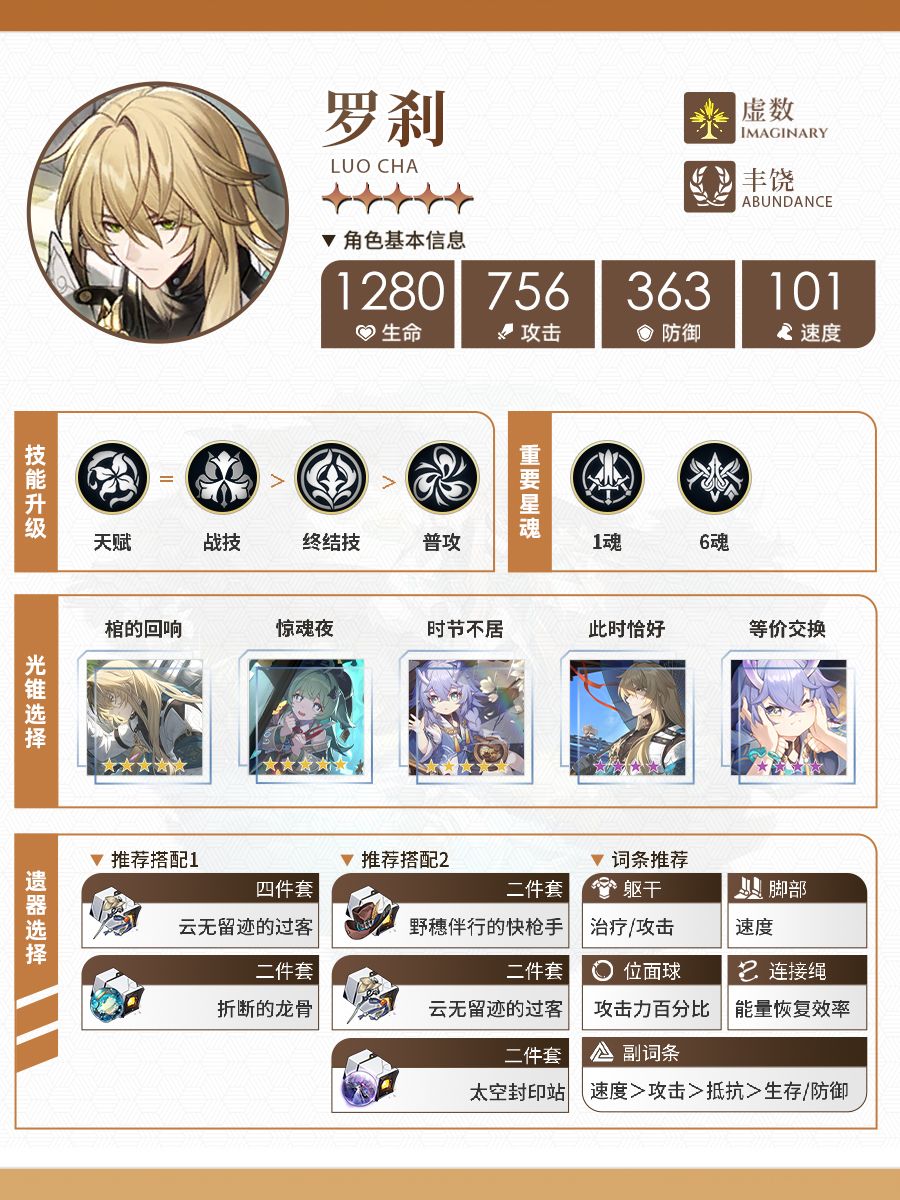 这一期是丰饶五星角色:灵砂、藿藿、罗刹、白露一图流