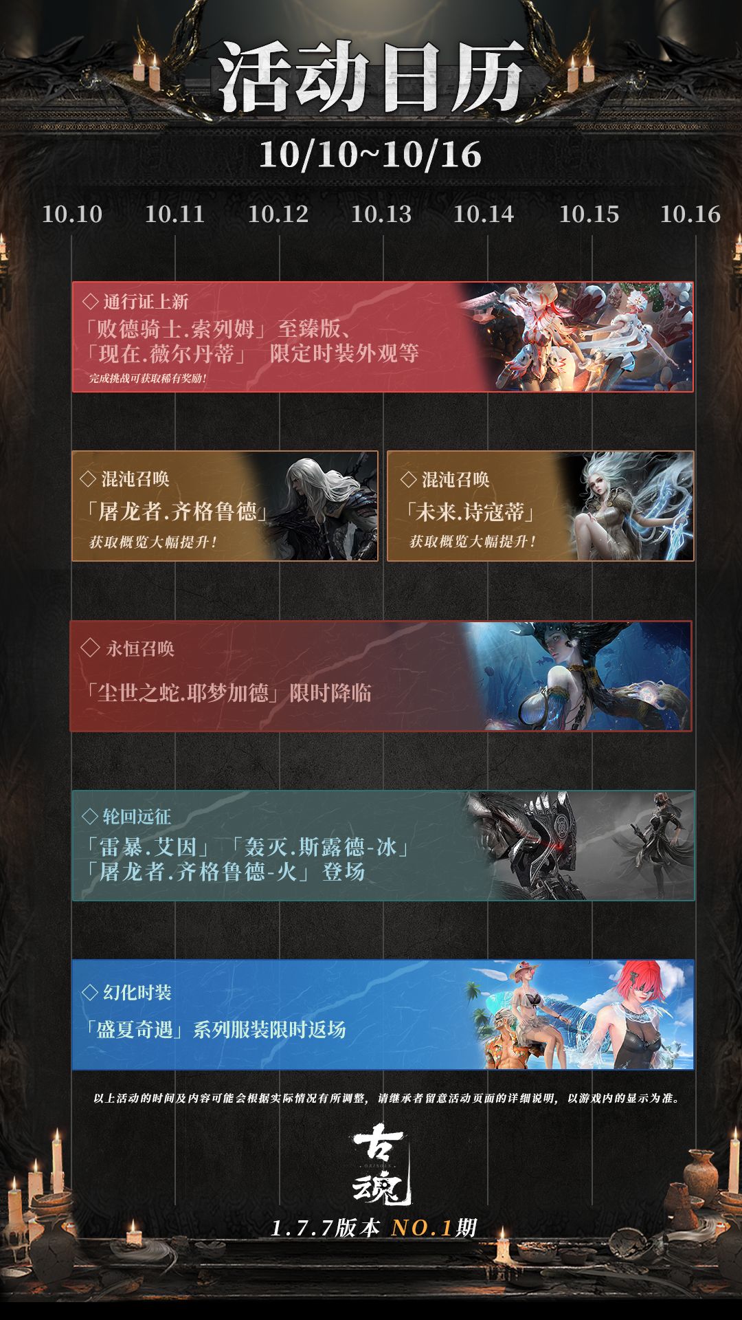 【魂域周刊】1.7.7版本 NO.1期丨周活动日历说明(10/10-10/16)
