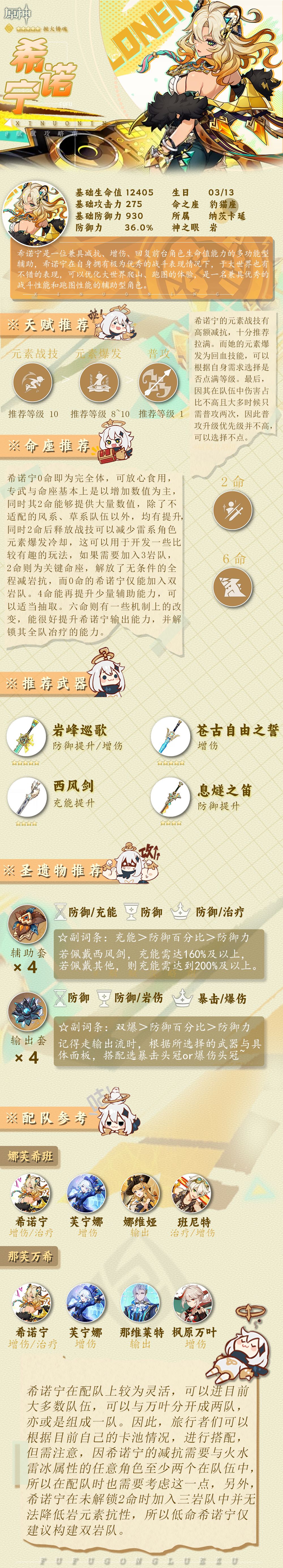希诺宁正式上线,跟着赋赋一起来看看该如何培养这位“新晋王牌辅助”叭!~