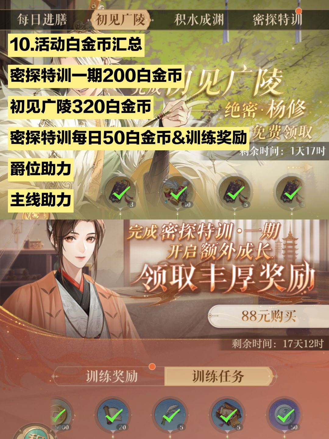 「如鸢」查漏补缺 拿🈵全部白金币 全途径