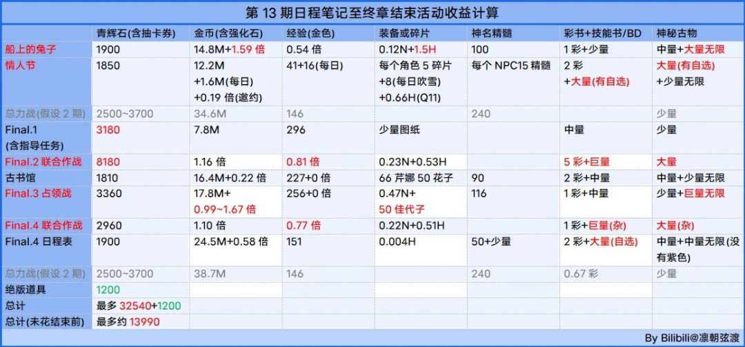 石头规划建议:青辉石收益参考下图,未花之前还有1.2w+,现在石头超过1万都来得及,本期其他卡池原则上都是可以不抽的,所以如果有富余的石头可以考虑直接下2井FES,肯定是不亏的,这期的FES卡池的强度和价值都算是较高的了