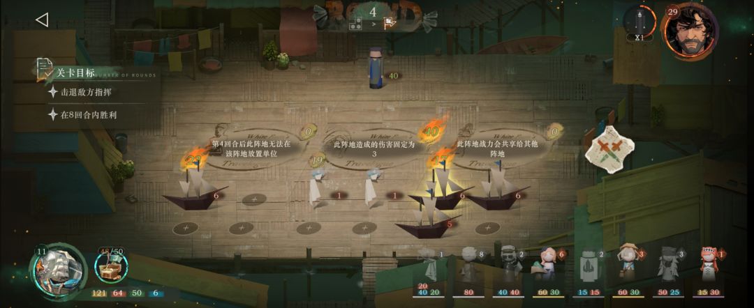 第一回合技能用出来就能放小船,此时场上一艘大船。