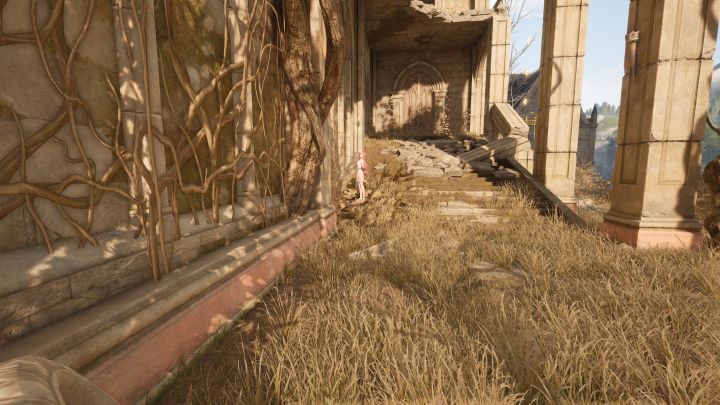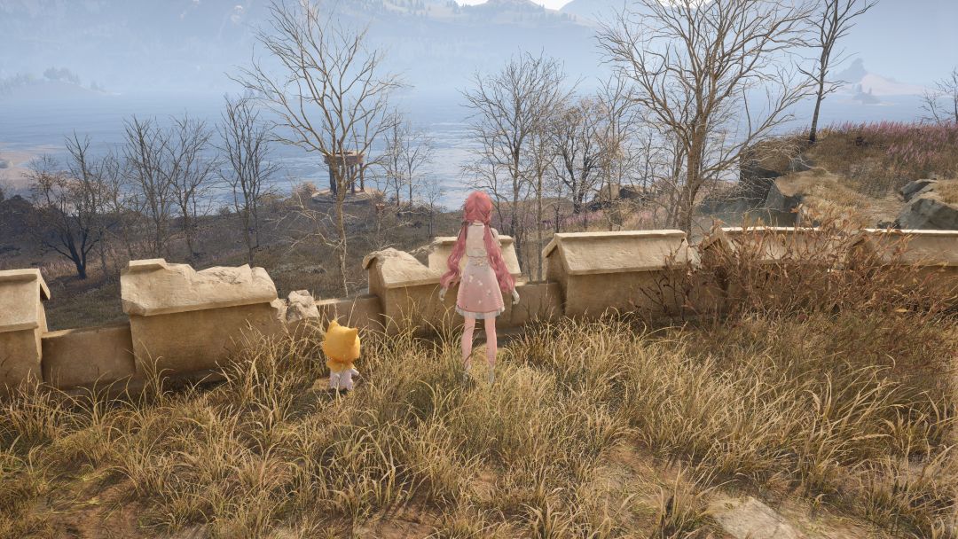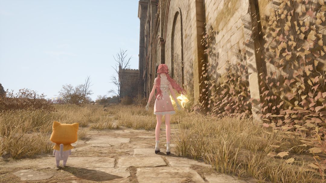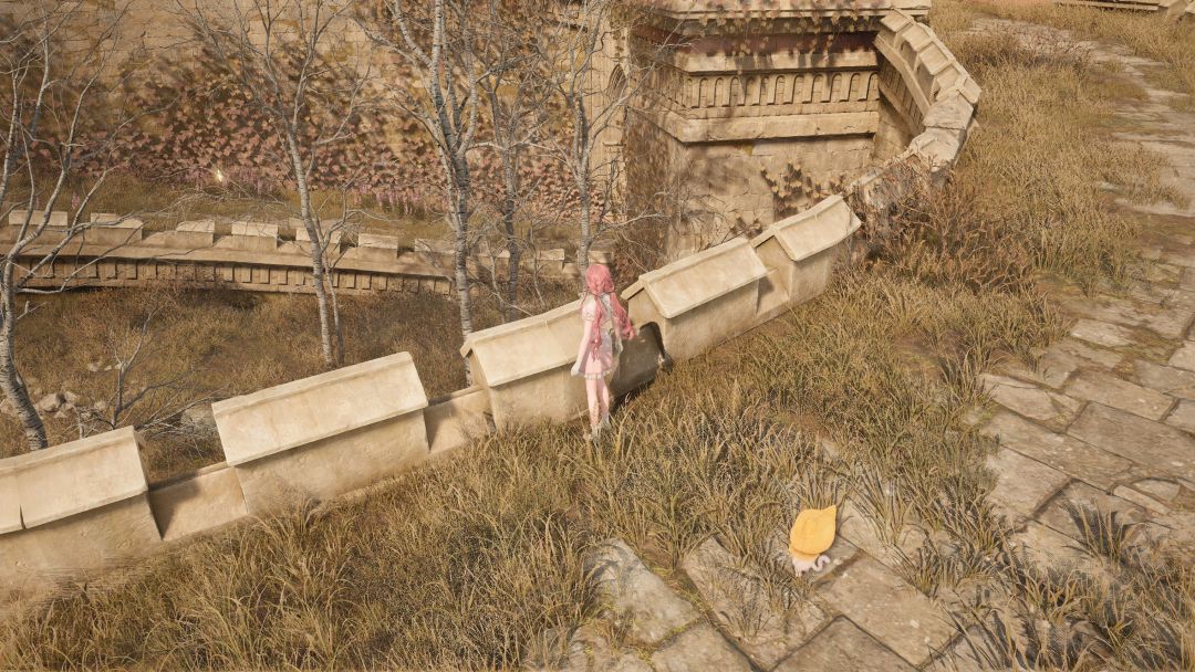 走几段台阶都到了我们的菲洛米亚女王行宫遗址的前庭啦,这里真的是特别精致美丽,不得不说Pc端体验感真的特别好,本人一到这个地方就被美到了,行宫建的也很逼真,制作组真的太厉害了,把遗址设计的既荒芜又美观。
