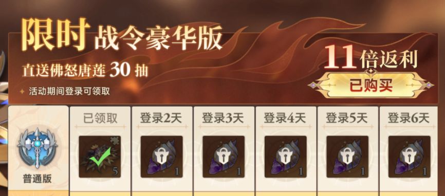②【446元】首日6星,不等直接拉:98战令+每日(6+18)元礼包*1+30元礼包+98元礼包*3=142抽