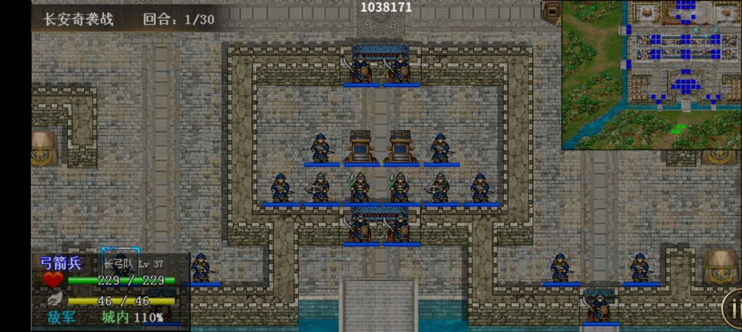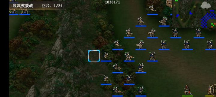 第十九关(图一)开局看出站位,右边的我军不一定能出来,达到一定条件或者一定回合在水两边会出现敌军,最后全灭敌军过关。第二十关(图二)开局在九宫格出现,有可能会在左上角出现两个我军,如果在其他位置出了神司马,在关卡内没有,在武将界面有但是追击没有伤害,把田里的敌军清光会触发一部分我军移动到右下角,最后全灭敌军过关。第二十一关(图三)开局两个出站位,一个在张飞那边,一个在另一边,张飞那边的敌军无限复活,必须把山上的三个主将杀了才不会复活,杀了后张飞往上走到村子触发剧情出现敌军,把清光后往左下走,会触发剧情出现伏兵,过一回合我军带友军出现在左上角,最后全灭敌军过关。第二十二关(图四)开局我军如图四一样出现,剩下的我军要等几回合在右上河边出现,慢慢把敌军清光过关(把主将杀了好像也能过关)。第二十三关(图五)我军有个出站位,慢慢往城内清理敌军,在城门清理敌军后,在城门右边会出现敌军,最后全灭敌军过关。第二十四关(图六)我军分两边进攻敌军,我军到一定位置会触发剧情和伏兵,敌军占领村子我军失败,我军占领村子触发剧情,在村子周围没有敌军开始收粮食,下回合触发剧情加回合数,最后全灭敌军过关或者占领村子达到一定条件过关(把司马懿杀了也可以过关)。第二十五关(图七)开局两个出站位和胃炎奇袭长安,我军在城内把敌军清到一定程度或者一定回合会触发剧情,在城门左边出现敌军伏兵,出现几波后我军在城门左下出现(杀的快不会出来),把敌军和伏兵都清光过关。第二十六关(图八)开局我军分成三个部分攻城,城门口的刀盾兵无限复活,杀刀盾兵到一定程度会触发剧情,敌军援军从城门上边出现,出现几波后城门的刀盾兵就可以杀掉了,然后全灭敌军过关。