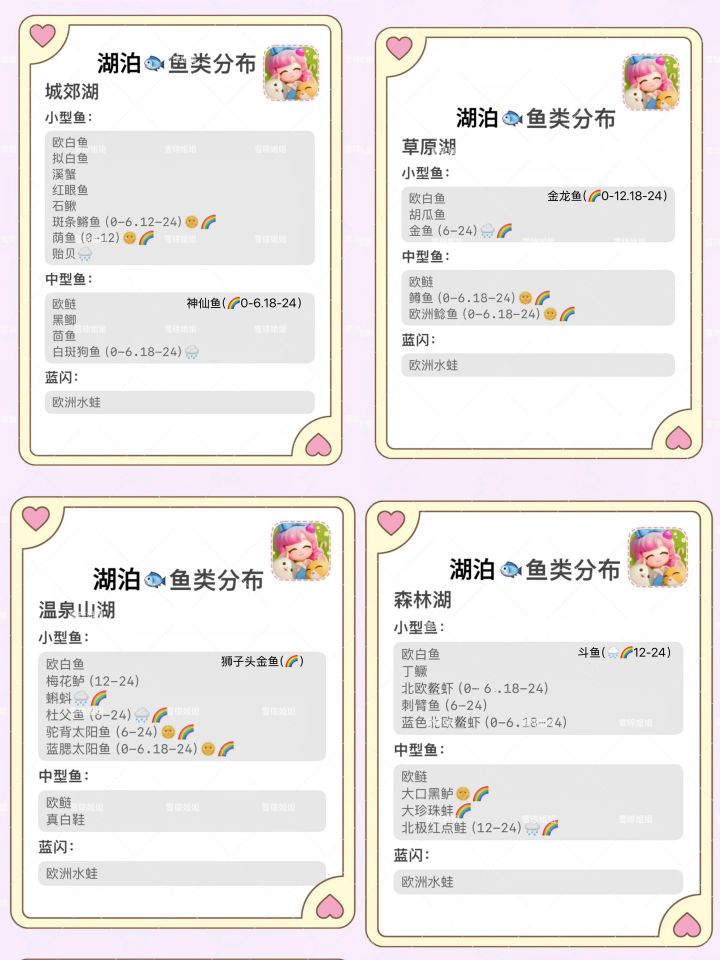 心动小镇钓鱼攻略 | 湖泊及河流鱼类分布