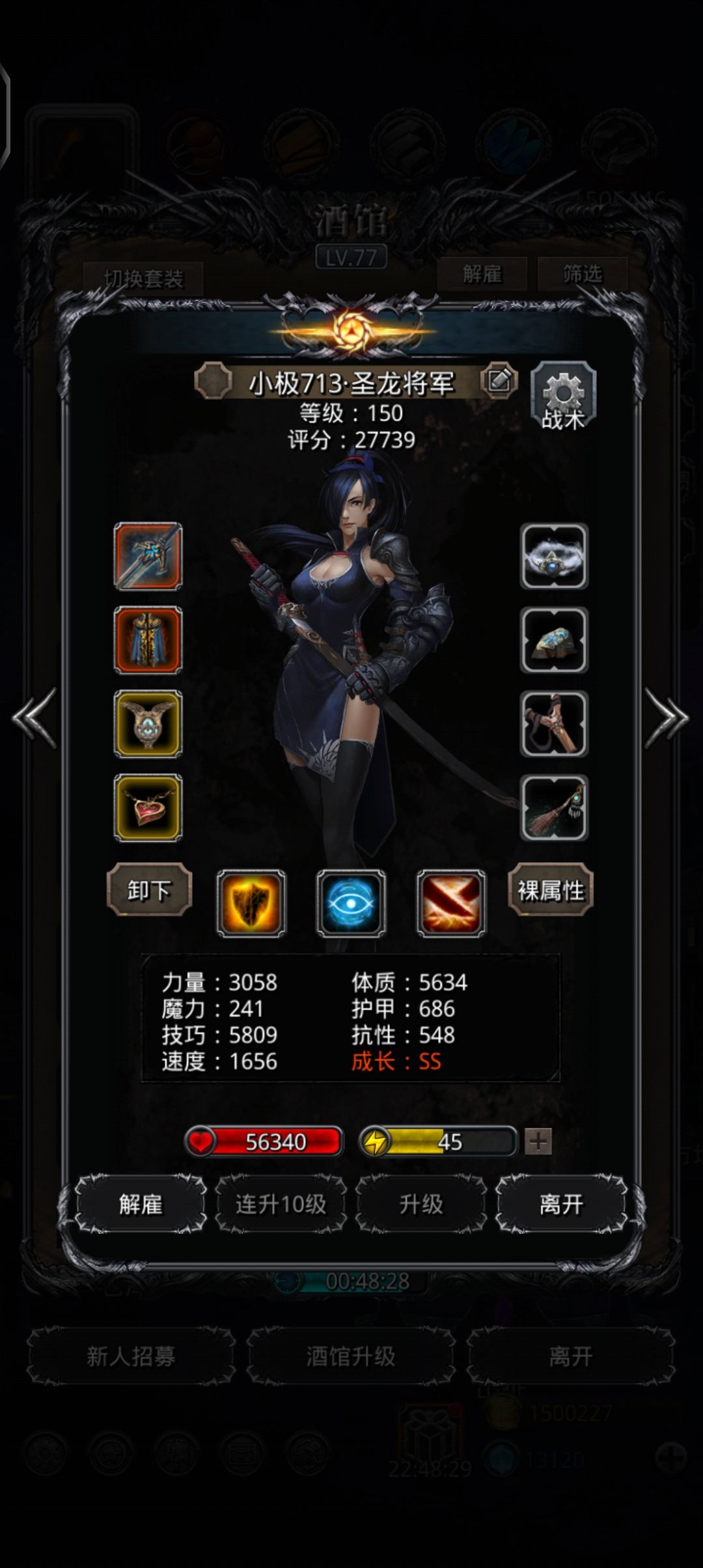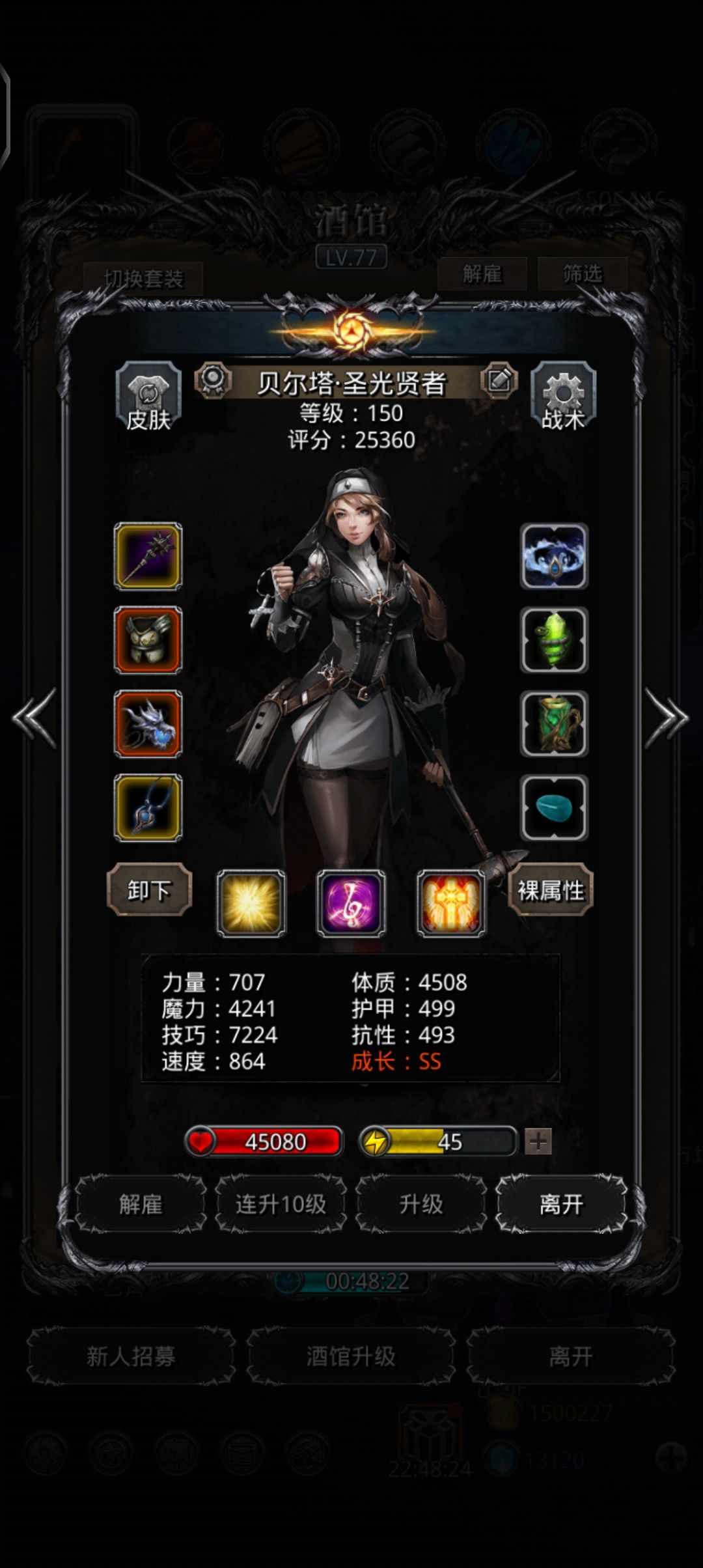 抄作业!传法出巧手圣龙补反击!剩下的刷脸!通了3次伤害不够!圣龙带800技持续环!传法带的魔技水环,祭司带的体技环,圣枪带的魔技空!控制好力速