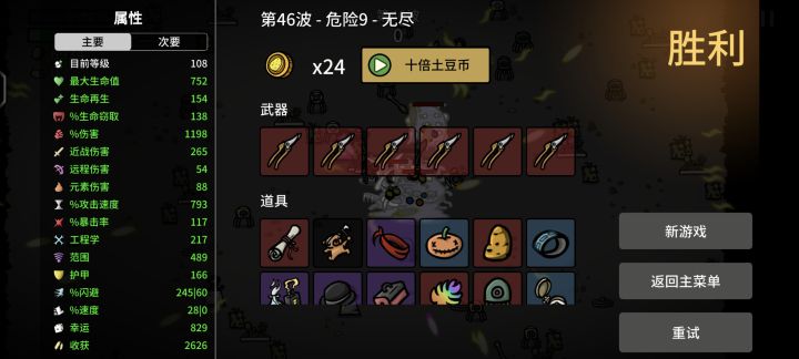 简单全程攻略:前期(11关前)猛猛刷输出属性,比如伤害近战,在第一个精英,也就是11关过了之后,开始优先保命,生命护甲回血吸血(输出不太够的情况吸血优先级放一点)ps.当然,前期刷生存,🐶过第一个精英也可以,看个人玩法了。