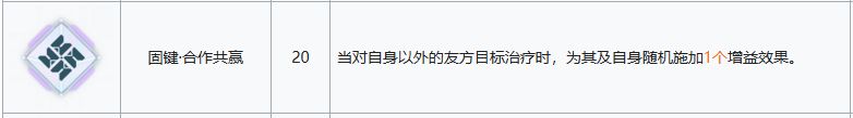 自保类固键,一般常用在低压环境,全队稳态压力不大,队友不需要治疗且自己需要去抗伤的情况,一般使用情况不多,因为你可以利用固键·互惠互利达到高效的恢复稳态效果,该固键的作用就是你想高速破稳的时候同时给自己一点生存提升,有使用的情况,推荐度中。