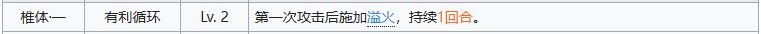 很好用的椎体,虽然看似只加了一点稳态伤害,实则不然,因为自身的支援射击以及有利循环的两段射击,其实提供的破稳能力不止一点,拥有很高的上限,同时再配合4椎的效果,还能再破一点稳态,破稳效果很显著,同时火热攻势的buff对于科谢尼娅来说比较容易获取。