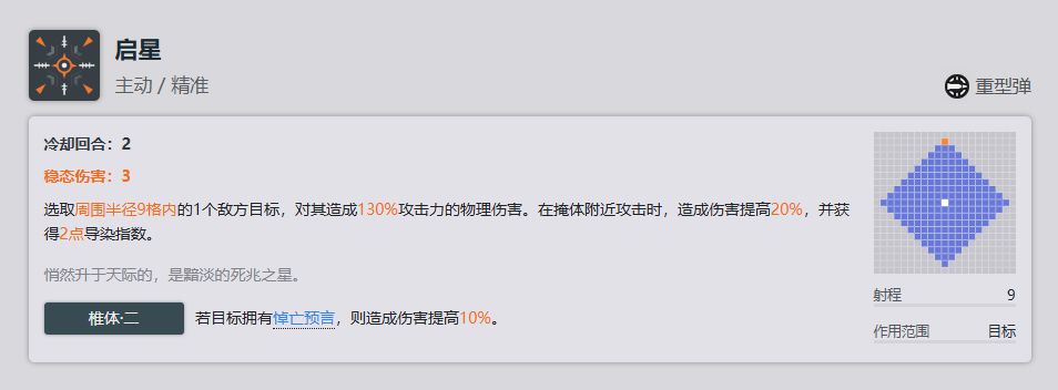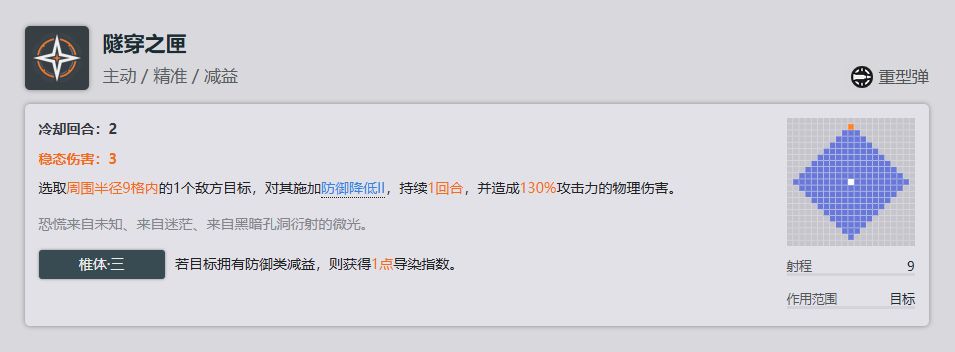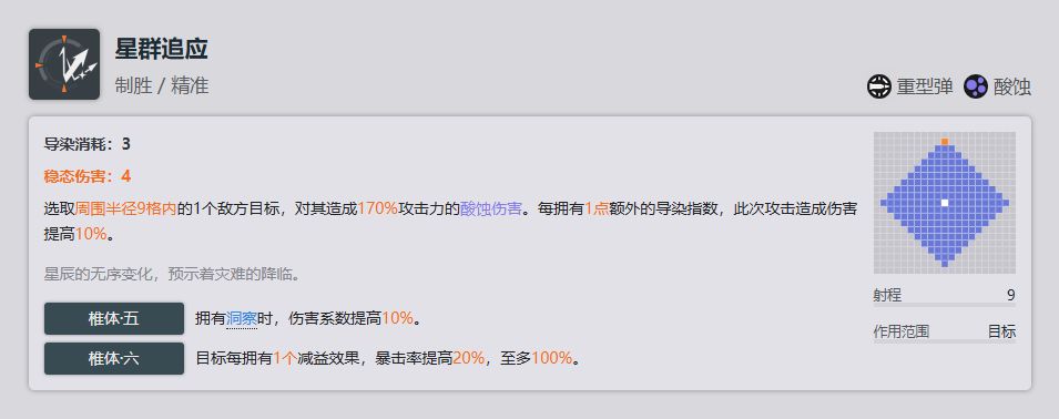 增伤椎体,在导染不够的情况下利用这个技能可以稍微提高一点输出,但是因为覆盖率不一定高所以性价比一般。