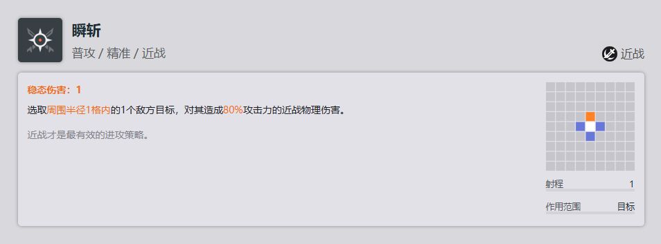 一句话总结:因为是输出性的尖兵角色,所以要提高自己的一击线,优先以输出为主。