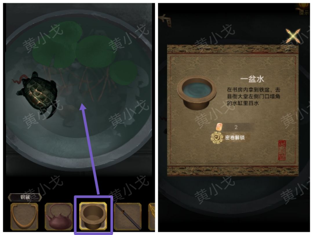 ⏩️点击水缸,用【铜盆】装水,获得【一盆水】