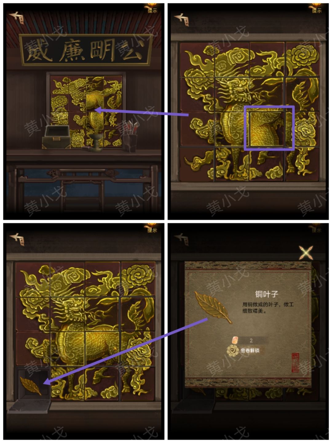 ⏩️点击匾额下面的图,完成拼图,获得【铜叶子】
