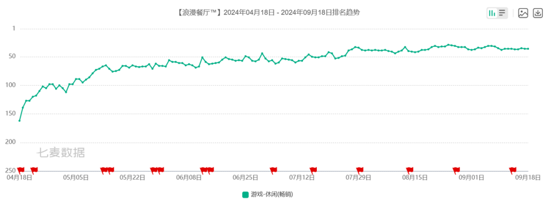 本以为《无尽冬日》的表现已经足够唬人,没想到来自深圳柠檬微趣的《浪漫餐厅》则拉出一条更加夸张的上扬曲线。