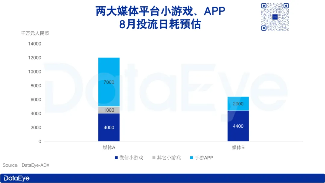 据DataEye于9月16日发布的数据显示,今年8月,小游戏在两大头部广告平台的买量日耗约9400万人民币。由于该数据已超同期APP手游的9000万日耗,小游戏也因此成为行业8月份的买量“第一人”。