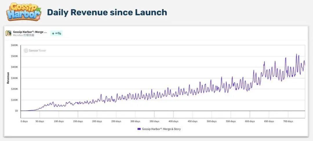 自柠檬微趣在2022年发布《浪漫餐厅》以来,《浪漫餐厅》在海外地区的增长态势极为稳定,且像极了一条不断上扬的直线。根据海外媒体Deconstructoroffun透露的数据显示,《浪漫餐厅》如今的日均总收入约为53.5万美元,预估年收更是高达1.95亿美元。