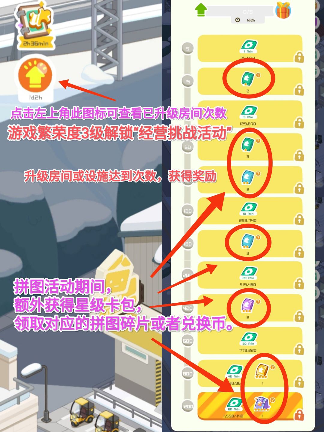 为什么呢?因为“经营挑战活动”3级解锁,“装饰任务”10级解锁。请看下图: