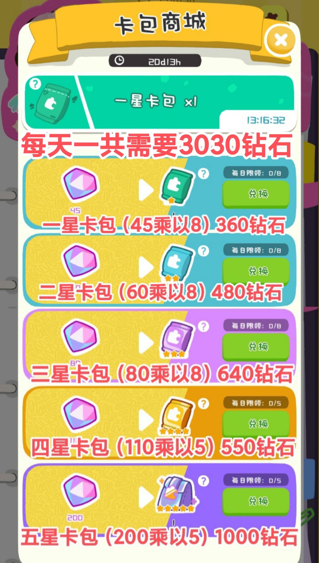 个人建议:钻石先存着,优先参加免费活动得到卡包。活动剩下7天时,优先购买五星卡包。五星卡包如果重复,送的兑换币是最多的,有30个。