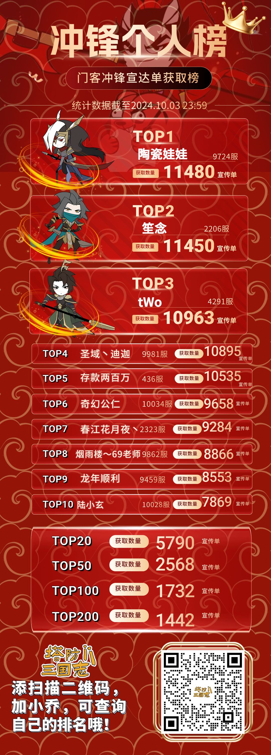 门客冲锋榜【最终排名】揭晓!