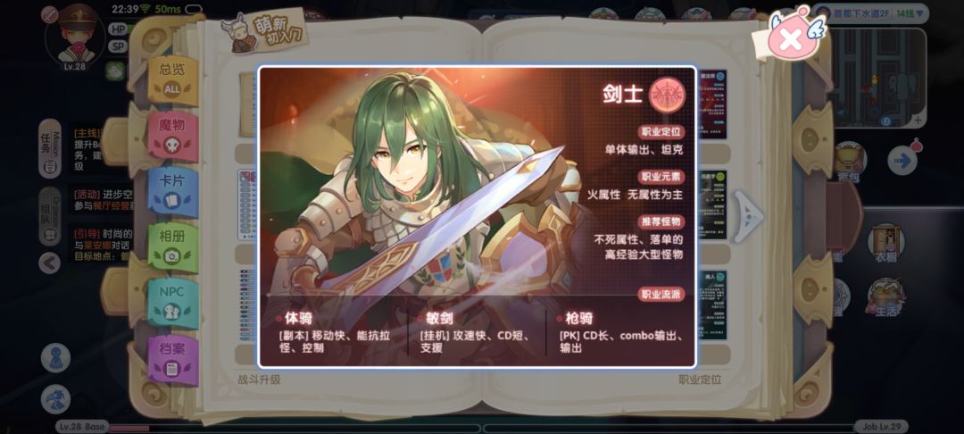 1.剑士,队伍中的坦克角色,拥有较高的防御力和生命上限,适合新手玩家快速上手。每个职业转职后又有推荐加点以及3条支线,如敏剑,枪骑,体骑。