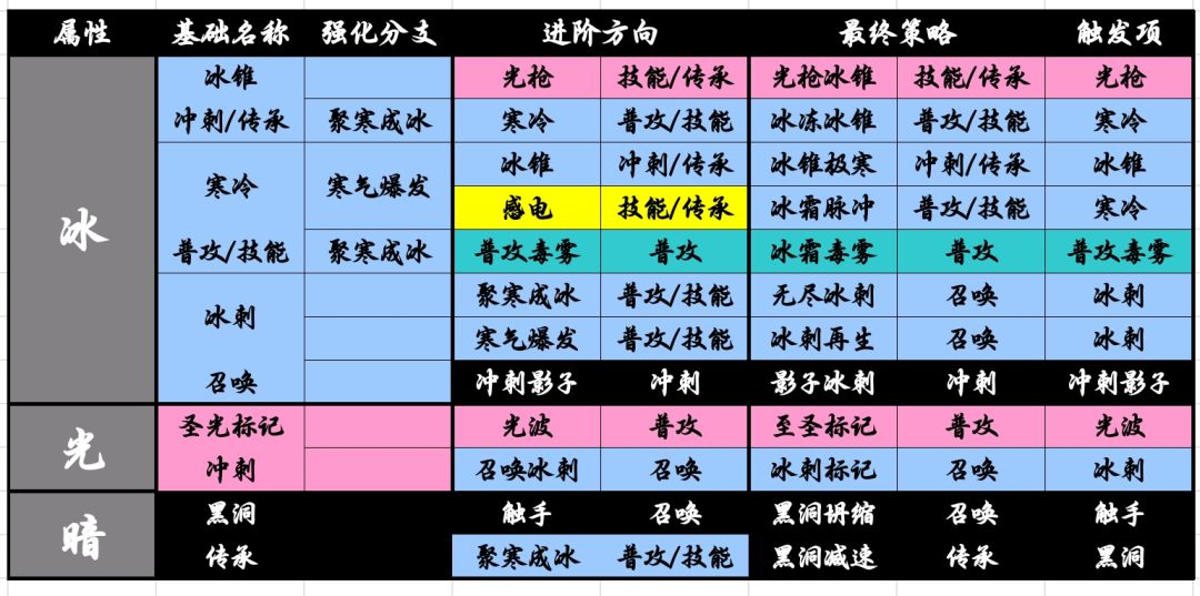 冰系的策略较为麻烦:它的寒冰策略有两个分支,这是其他策略所没有的。