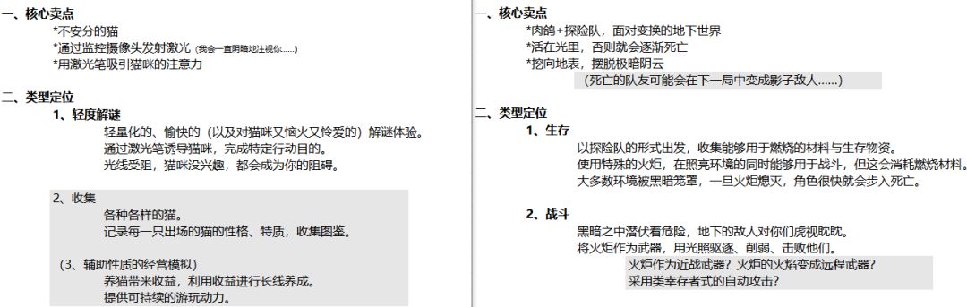 综合考虑可玩性、优劣势、可行性、移动端性能与开发压力后,选择了激光笔+猫猫的方案。生存挖矿肉鸽则因为对堆量、美术和代码量的问题,遗憾退场。
