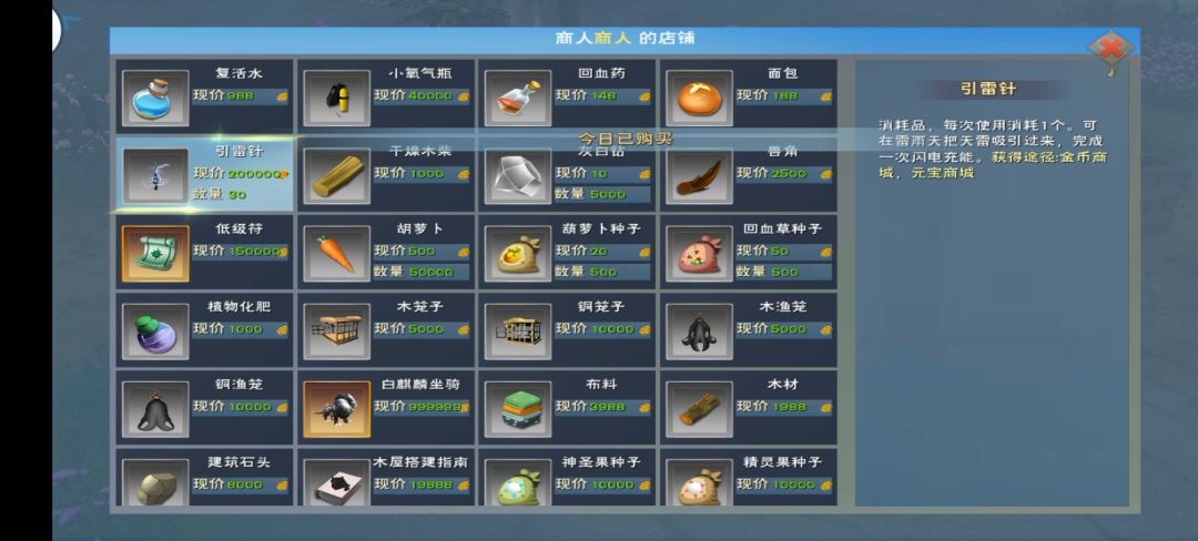 引雷针必买,500次雷劈(天选之人称号获取,开物理蚀神任务),萝卜种子回血草种子可选购买