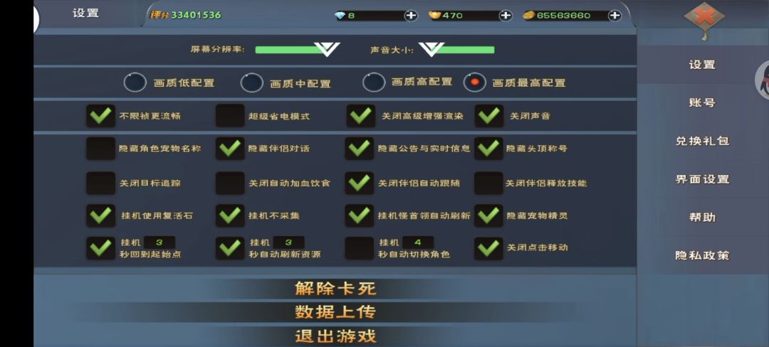 挂机设置,回到起点和自动刷新资源根据个人情况调2个时间相同就行。下边刷鹿挂