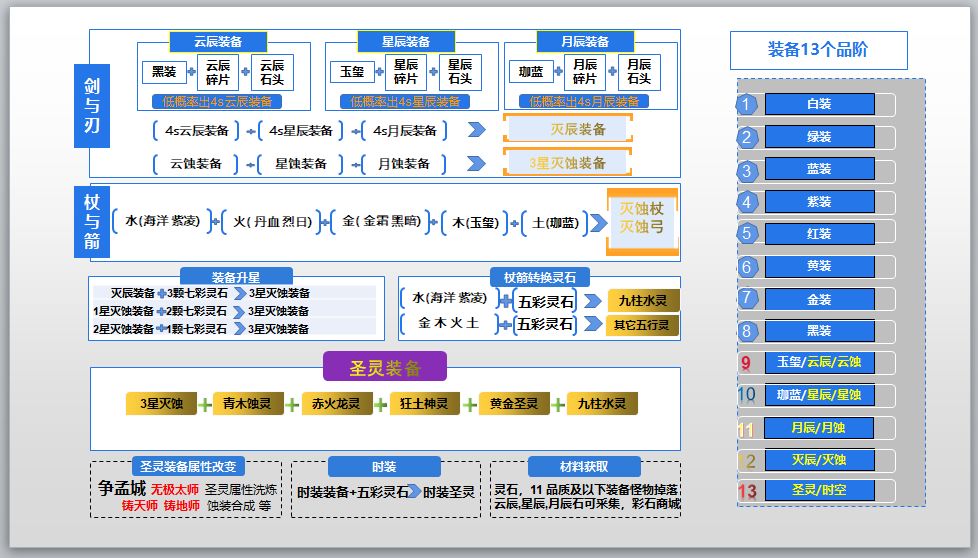 灭蚀装备12阶以上(时空12阶和抽奖终极装备12阶)去解锁圣灵属性就是圣灵装备13阶,2种同部位圣灵装备合成可以升级成圣灵双生装备14阶。这些太遥远还是先合2套灭蚀吧