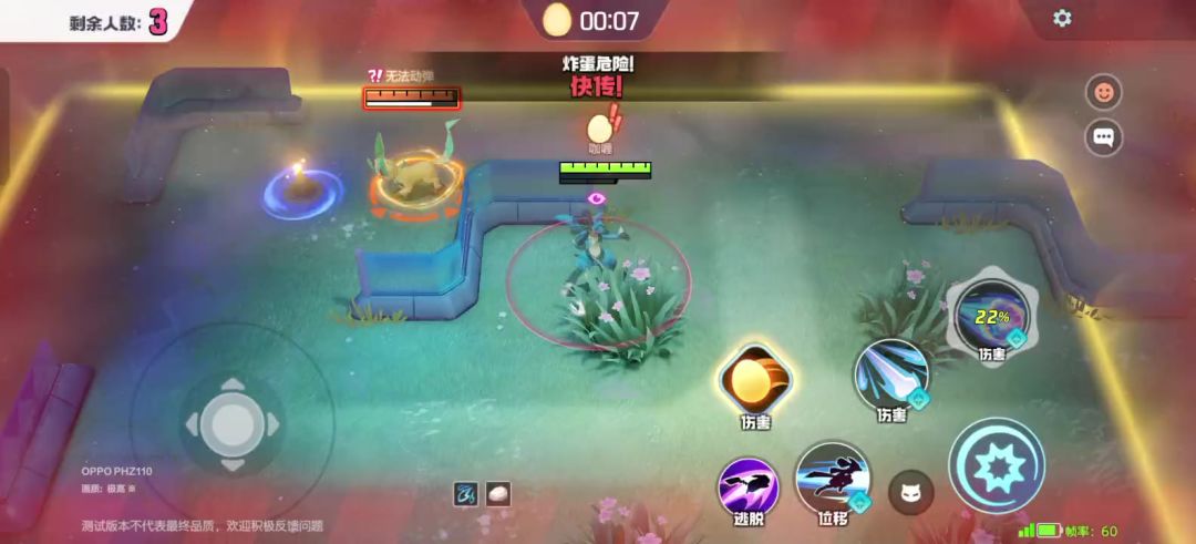 2.当自身携带“炸弹”后,也不要慌张,要合理运用位移招式,在恰当的倒计时时间内,将“炸弹”传递给其他宝可梦。